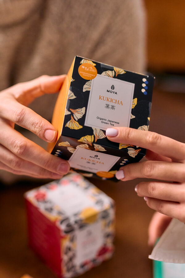Genmaicha is a sweet, slightly nutty, aromatic, rusty coloured tea. Its flavour – the one we know from sushi bars and Japanese restaurants – is exceptionally memorable. Legend has it that a servant to the Hakone shogun accidentally served his master a tea with some stolen grains of rice that he had in his pocket. This mistake cost him his life, but the shogun liked the taste so much that he decided to include it in his daily diet. This is how genmaicha, today known also as „popcorn tea”, came about. It was once considered to be a drink of the lower classes, as people used to add cheap rice grains to increase the volume of pure sencha. Moya Genmaicha is organically cultivated on the island of Kyushu.