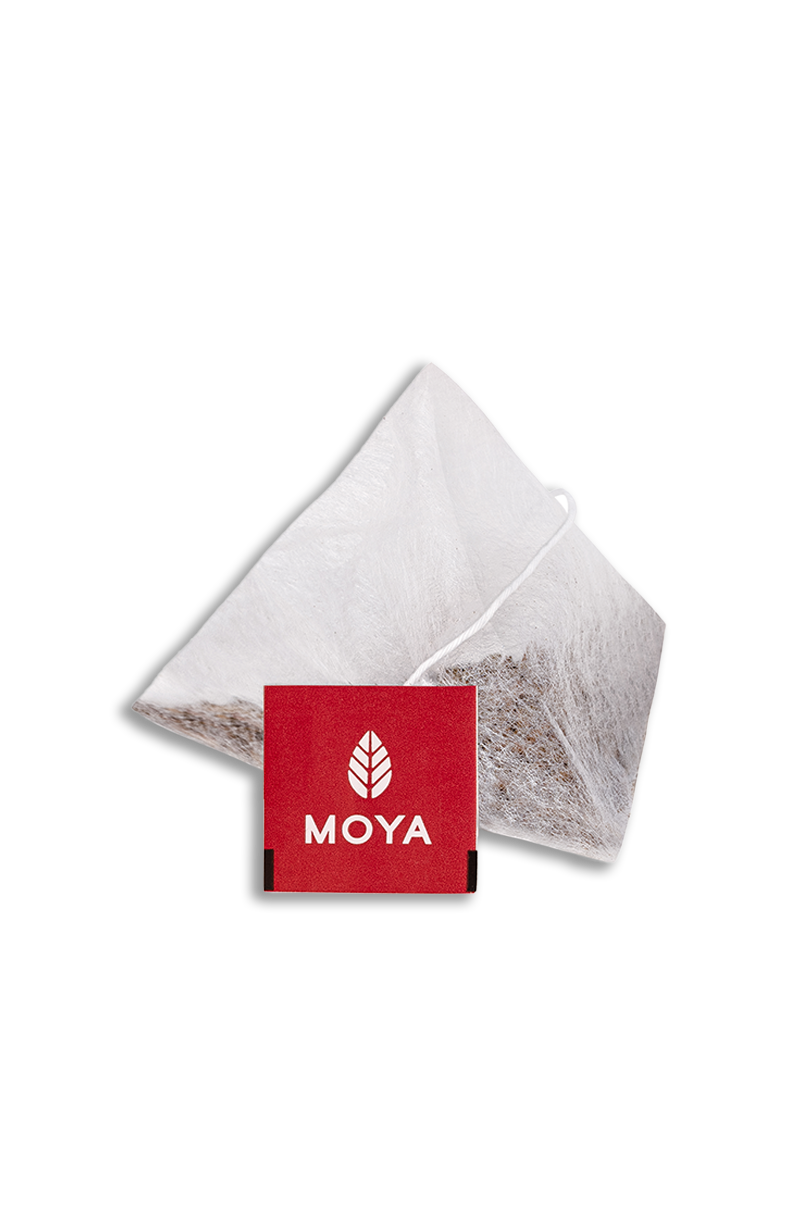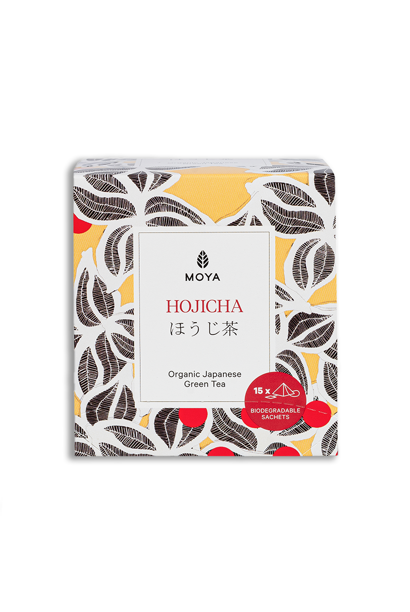 Moya Hojicha is a distinctive Japanese green tea created by roasting tea leaves and stems at high temperature. This process gives it its characteristic warm aroma with notes of nuts, cocoa and caramel, as well as a naturally low caffeine content.