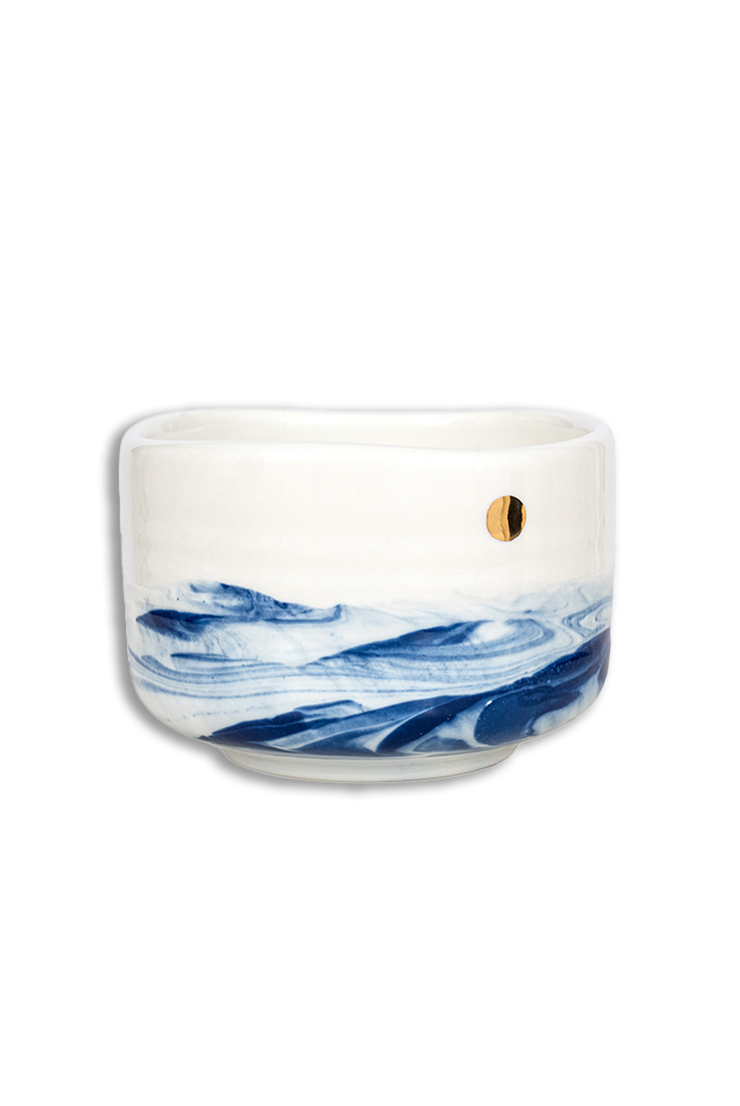 Matchawan Seiran służy do picia matchy i został wykonany ręcznie z najwyższej jakości porcelany. Jego nazwa oznacza „błękitny wiatr” i oddaje lekkość oraz subtelność formy inspirowanej naturą. Delikatne zdobienia i spokojna kolorystyka tworzą harmonijną całość, która podkreśla rytuał przygotowywania matchy.