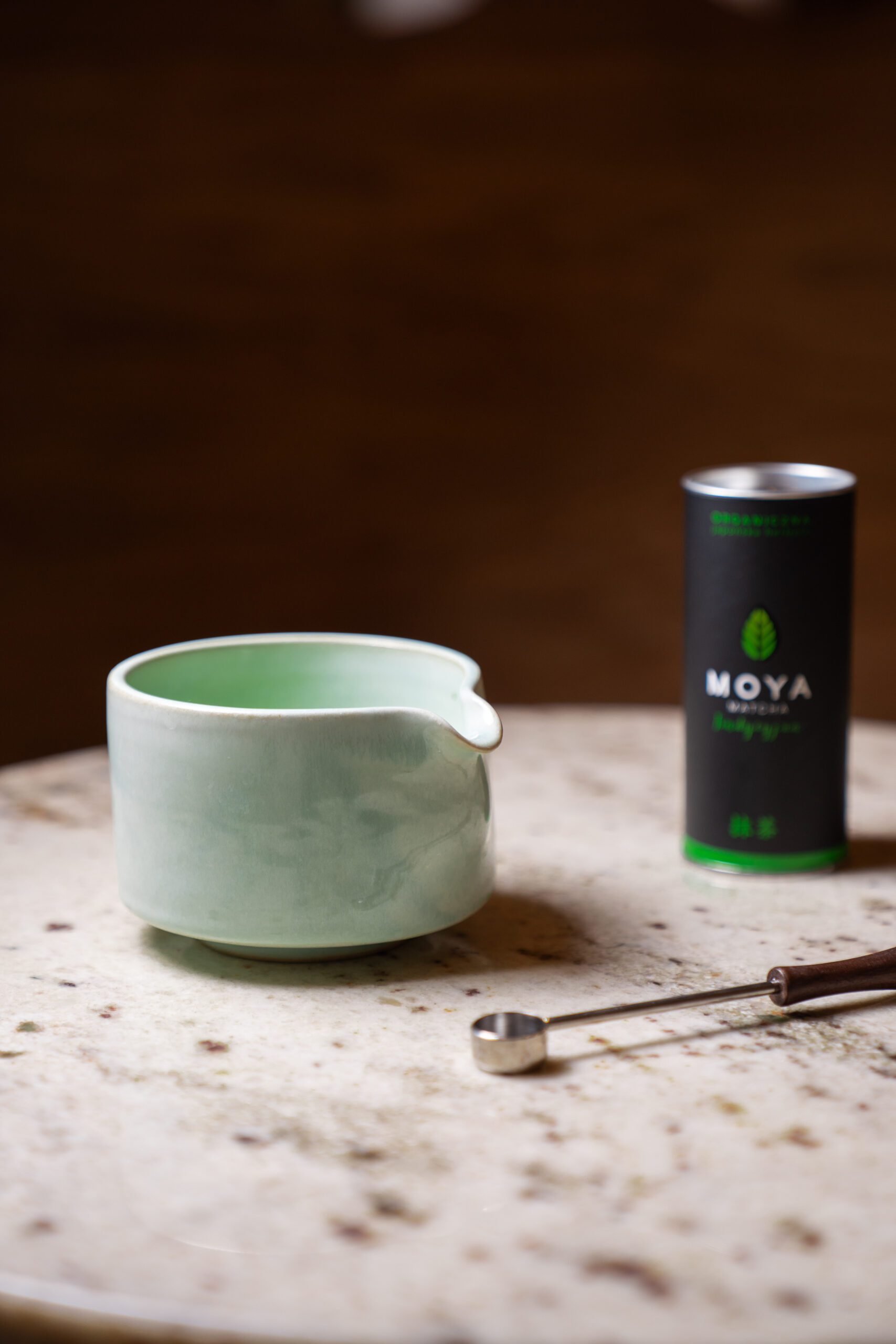Matchawan Umi z dzióbkiem został wykonany ręcznie na kole garncarskim z szarej gliny z delikatnym dodatkiem szamotu i szkliwa z glazury wykonanego zgodnie z wielowiekową japońską tradycją. Powstał w limitowanej serii KOOE dla MOYA wykonanej przez krakowskie studio ceramiki KOOE, którego wyroby charakteryzują się nie tylko pięknymi formami ale też wyjątkową wytrzymałością ze względu na wypał w wysokiej temperaturze, a dzióbek sprawia, że nie rozlejesz matchy przelewając ją do szklanki. Każdy matchawan z tej serii to unikalne rękodzieło, jego wygląd i rozmiar może zatem delikatnie odbiegać od tego na zdjęciu. .